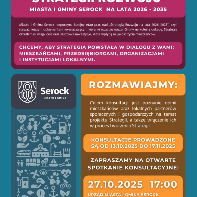Zainteresowanych zapraszamy również na otwarte spotkanie konsultacyjne, które odbędzie się 27 października 2025 r. o godzinie 17:00 w Urzędzie Miasta i Gminy w Serocku.