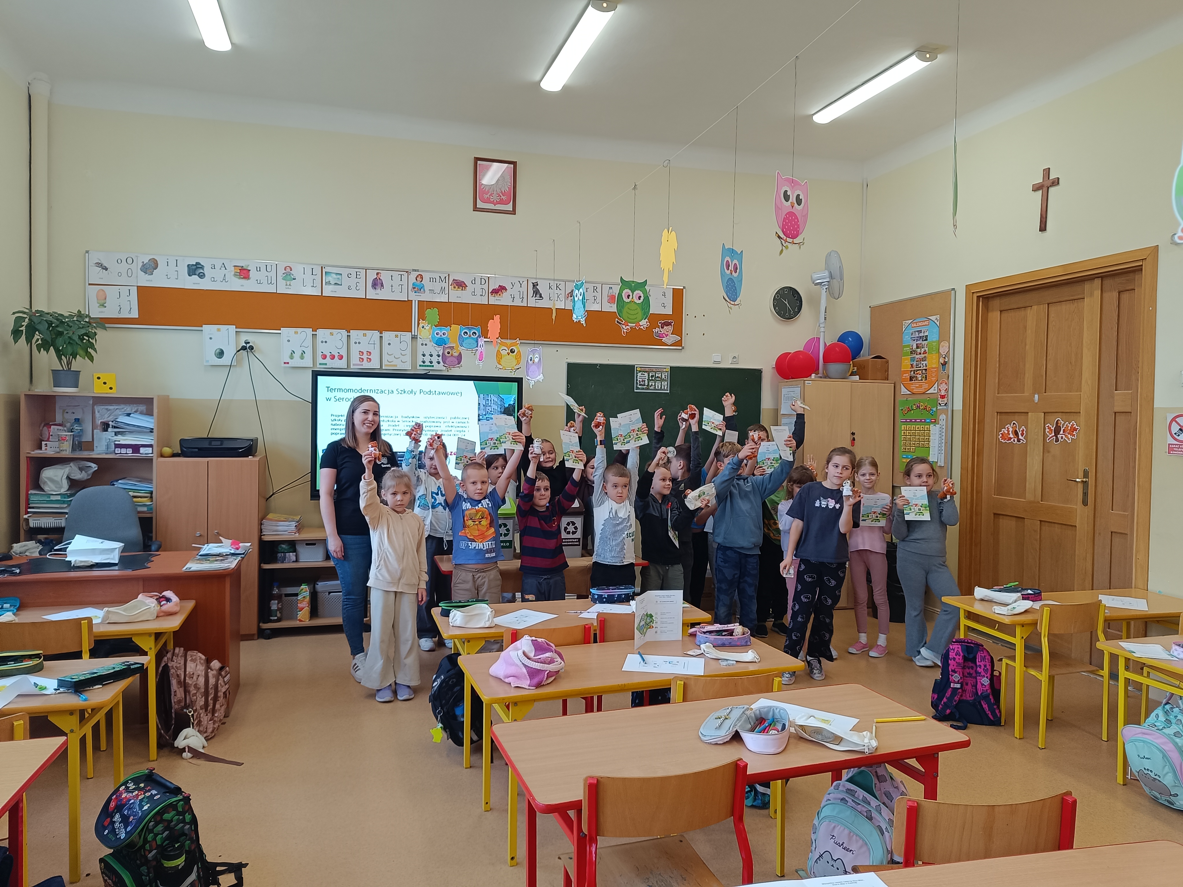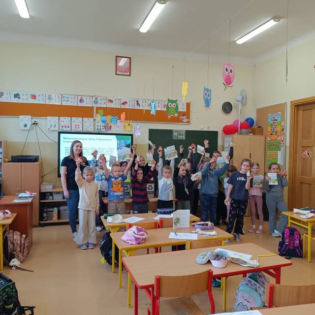 Dzieci aktywnie uczestniczyły w zajęciach, m.in. w przygotowanych quizach dotyczących rozpoznawania poszczególnych frakcji odpadów i umieszczania ich w odpowiednich pojemnikach. Pierwszoklasiści wykazali się dużą wiedzą, chętnie biorąc udział w zaplanowanych aktywnościach. Na zakończenie każdy uczestnik otrzymał drobny upominek.
