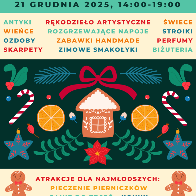 Od godziny 14:00 do 19:00 czekać będzie na Was wyjątkowy kiermasz oraz liczne atrakcje, które wprowadzą wszystkich w prawdziwie bożonarodzeniowy nastrój.