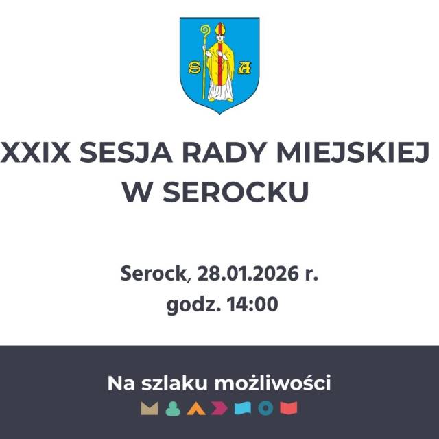 28 stycznia 2026 r. o godz. 14:00 w sali konferencyjnej Urzędu Miasta i Gminy odbędzie się XXIX Sesja Rady Miejskiej w Serocku.